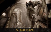 1. Огромный дракон-страж, охраняющий вход в хранилище Лестрандж. «Он очень бледный, потому что почти всю жизнь провел под землей», — говорит Крейг. «Но он гигантских размеров — 64 фута в длину (19.507 метров). Для того, чтобы попасть в хранилище, необходимо по небольшой площадке и проходам между колонами обойти дракона».